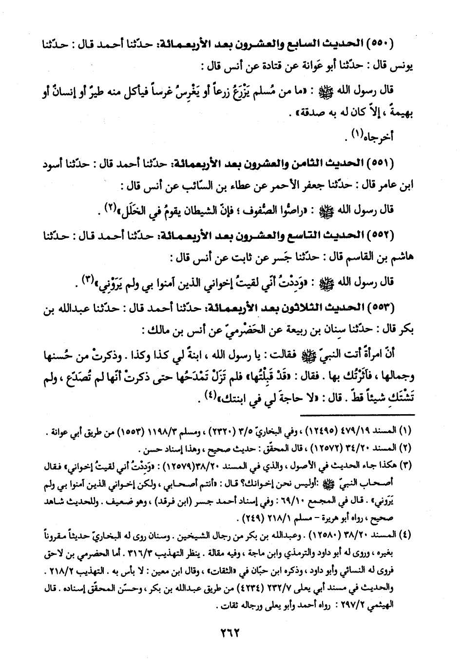 (٥٥١) الحديث الثامن والعشرون بعد الأربعمائة: حدّثنا أحمد قال: حدّثنا أسود ابن عامر قال: حدّثنا جعفر الأحمر عن عطاء بن السّائب عن أنس قال:
