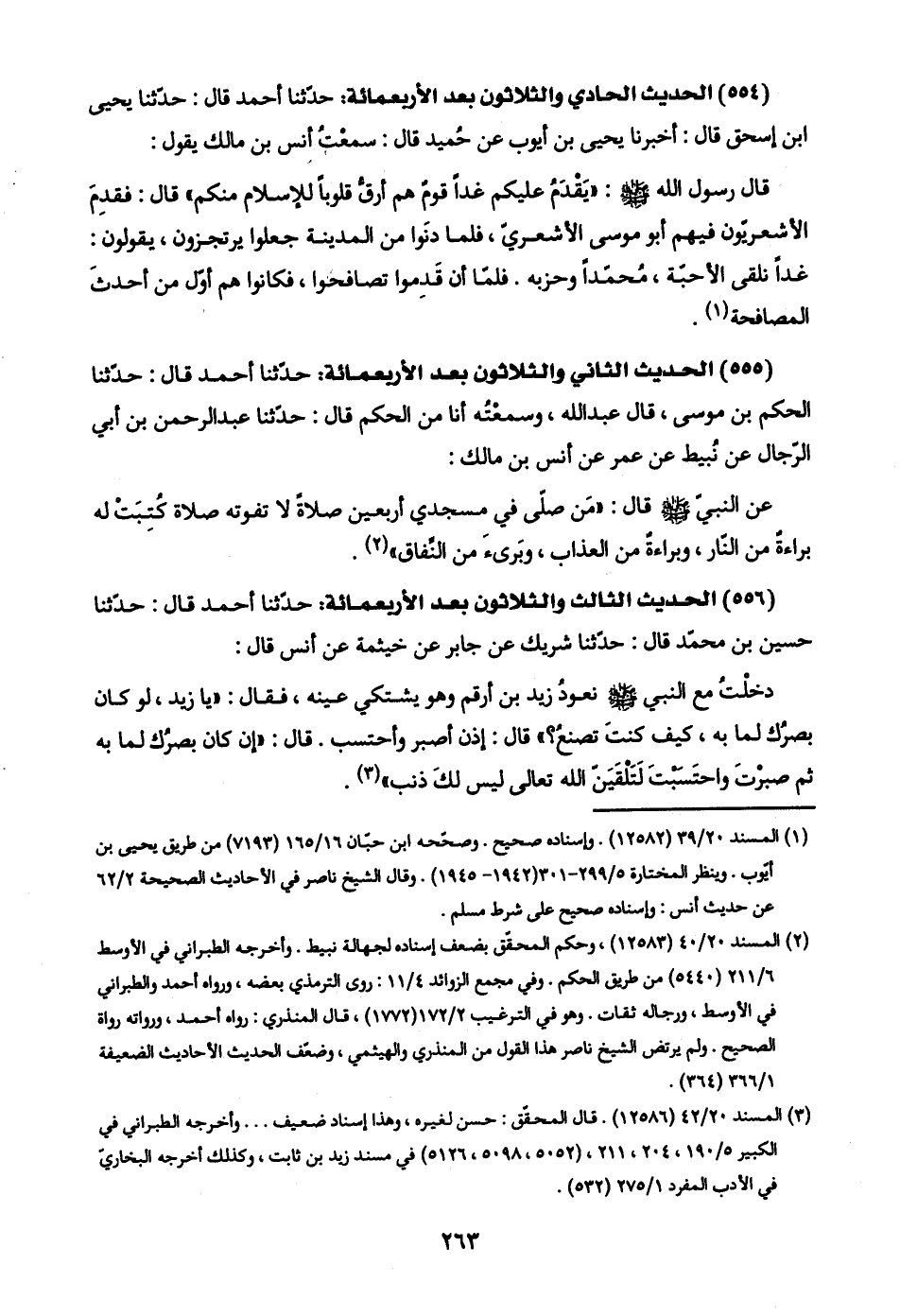 (٥٥٥) الحديث الثاني والثلاثون بعد الأربعمائة: حدّثنا أحمد قال: حدّثنا الحكم بن موسى، قال عبد اللَّه، وسمعْتُه أنا من الحكم قال: حدّثنا عبد الرحمن بن أبي الرّجال عن نُبيط عن عمر عن أنس بن مالك: