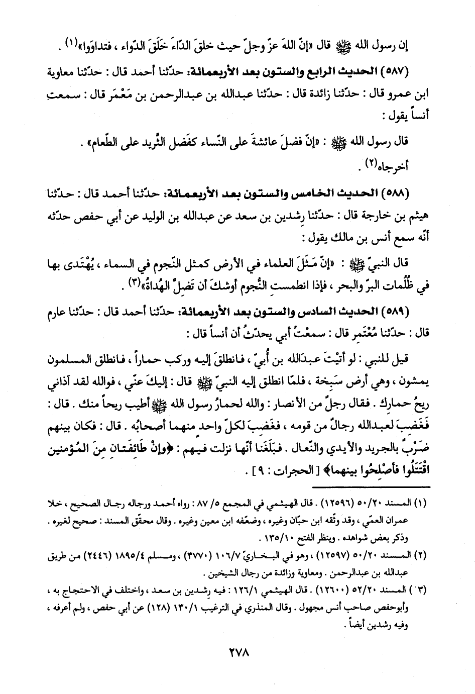(٥٨٨) الحديث الخامس والستون بعد الأربعمائة: حدّثنا أحمد قال: حدّثنا هيثم بن خارجة قال: حدّثنا رِشدين بن سعد عن عبد اللَّه بن الوليد عن أبي حفص حدّثه أنّه سمع أنس بن مالك يقول: