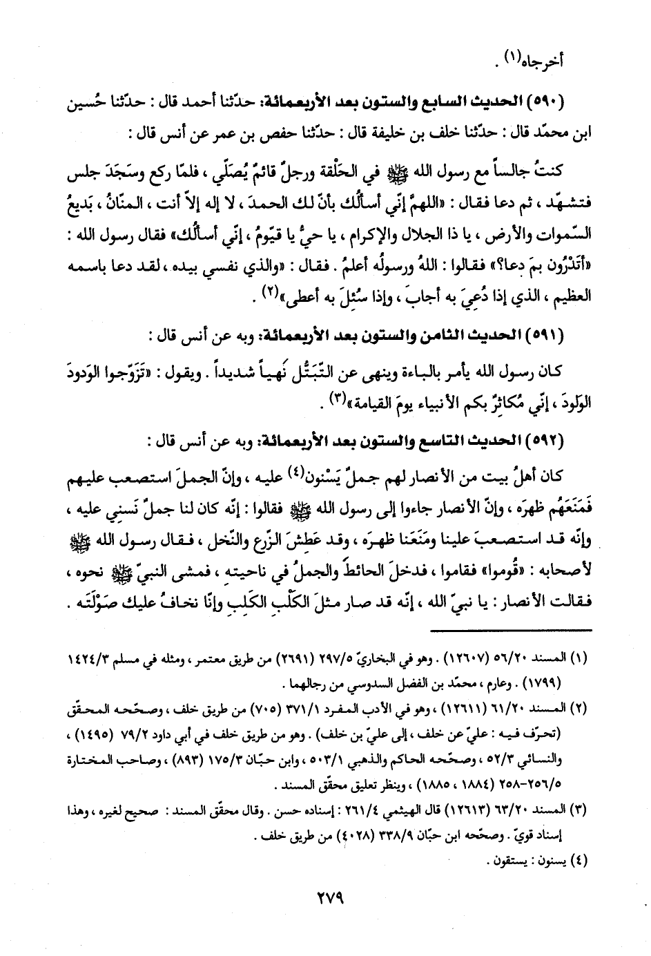 (٥٩٠) الحديث السابع والستون بعد الأربعمائة: حدّثنا أحمد قال: حدّثنا حُسين ابن محمّد قال: حدّثنا خلف بن خليفة قال: حدّثنا حفص بن عمر عن أنس قال: