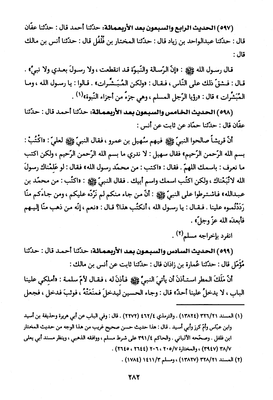(٥٩٨) الحديث الخامس والسبعون بعد الأربعمائة: حدّثنا أحمد قال: حدّثنا عفّان قال: حدّثنا حمّاد عن ثابت عن أنس: