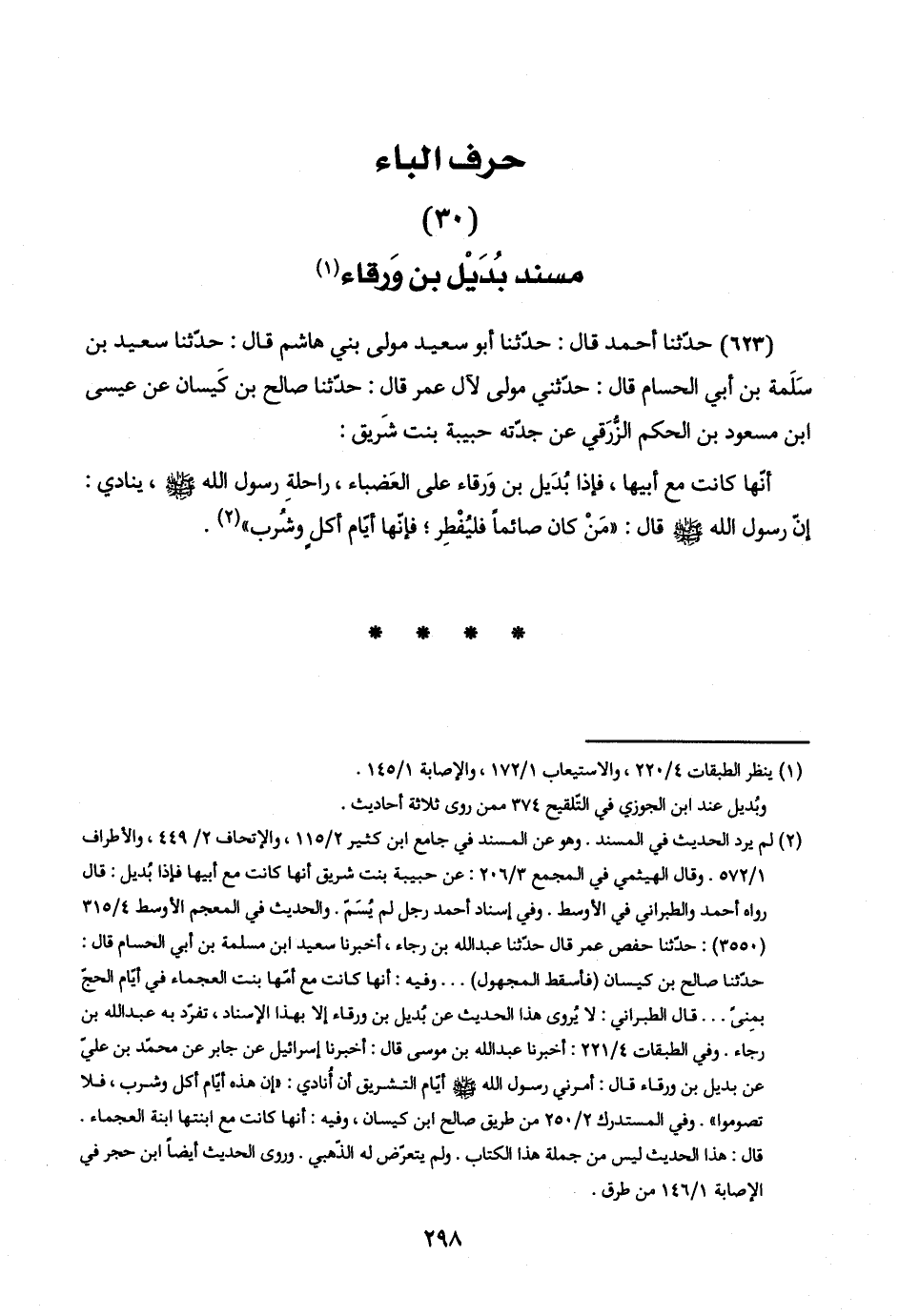 (٣٠) مسند بُدَيْل بن وَرقاء (١)