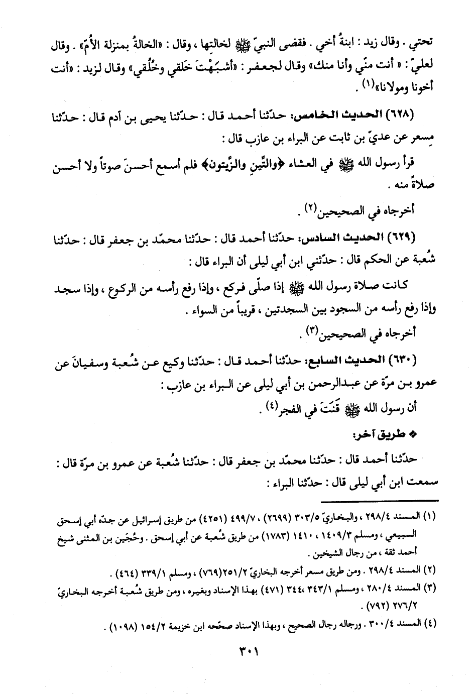 حدّثنا أحمد قال: حدّثنا محمّد بن جعفر قال: حدّثنا شُعبة عن عمرو بن مرّة قال: سمعت ابن أبي ليلى قال: حدّثنا البراء: