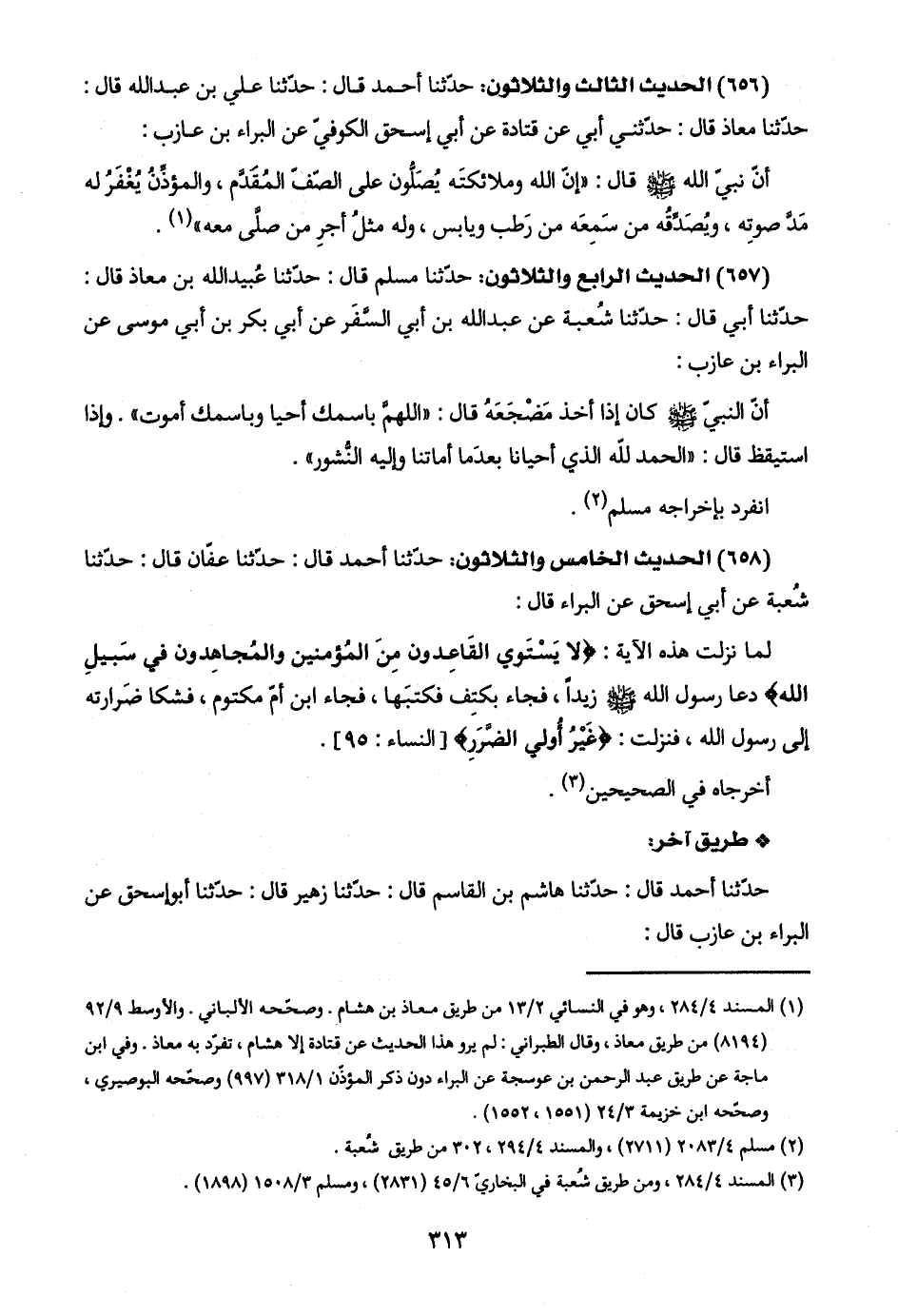 (٦٥٧) الحديث الرابع والثلاثون: حدّثنا مسلم قال: حدّثنا عُبيد اللَّه بن معاذ قال: حدّثنا أبي قال: حدّثنا شُعبة عن عبد اللَّه بن أبي السَّفَر عن أبي بكر بن أبي موسى عن البراء بن عازب: