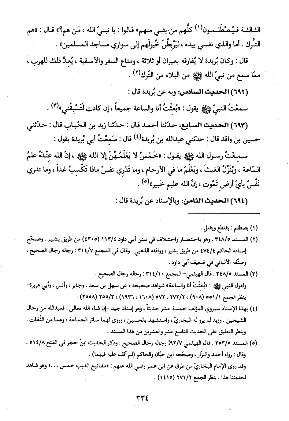 (٥) المسند ٥/ ٣٥٣. قال الهيثمي ٧/ ٩٢: رجاله رجال الصحيح. وذكر الحديث ابنُ حجر في الفتح ٨/ ٥١٤. وقال: رواه أحمد والبزّار، وصحّحه ابن حبّان والحاكم (لم أقف عليه فيهما).