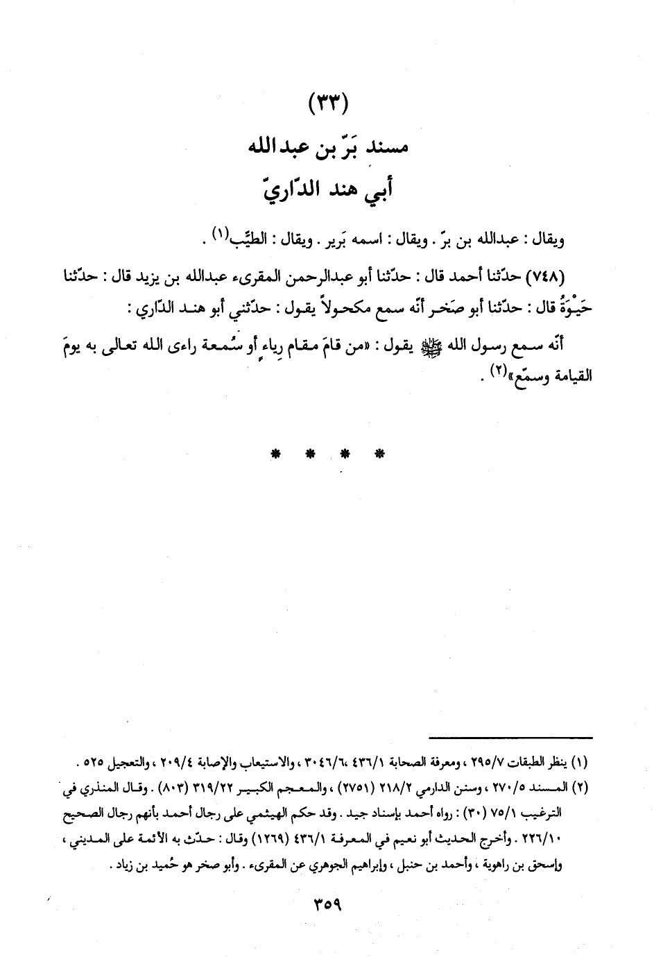 (٣٣) مسند بَرّ بن عبد اللَّه أبي هند الدّاريّ