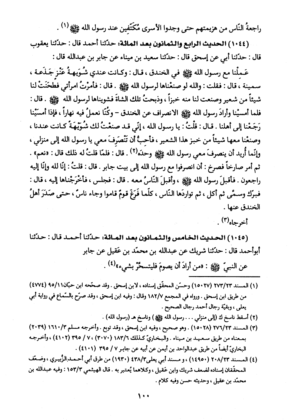 (١٠٤٤) الحديث الرابع والثمانون بعد المائة: حدّثنا أحمد قال: حدّثنا يعقوب قال: حدّثنا أبي عن إسحق قال: حدّثنا سعيد بن ميناء عن جابر بن عبد اللَّه قال: