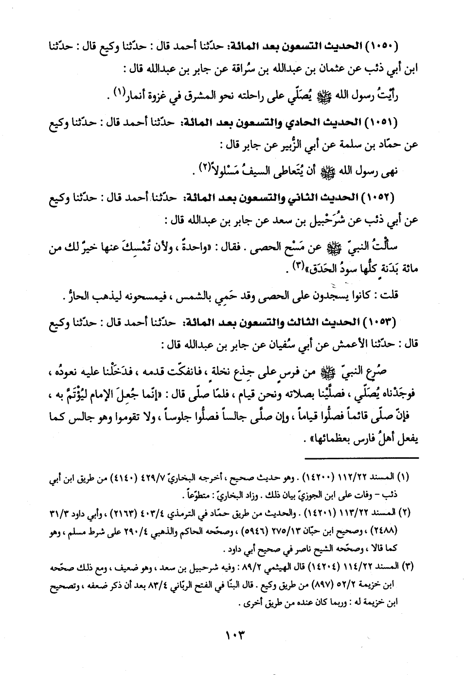 (١٠٥١) الحديث الحادي والتسعون بعد المائة: حدّثنا أحمد قال: حدّثنا وكيع عن حمّاد بن سلمة عن أبي الزُّبير عن جابر قال: