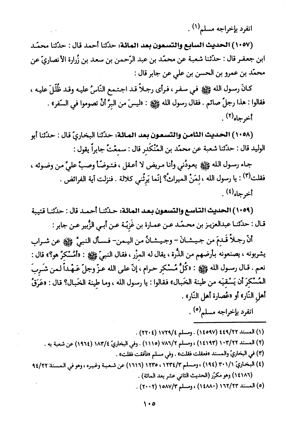 (٤) البخاريّ ١/ ٣٠١ (١٩٤)، ومسلم ٣/ ١٢٣٤، ١٢٣٥ (١٦١٦) عن شعبة وغيره، وهو في المسند ٢٢/ ٩٤ (١٤١٨٦) وهو مكرّر (الحديث الثاني عشر بعد المائة).