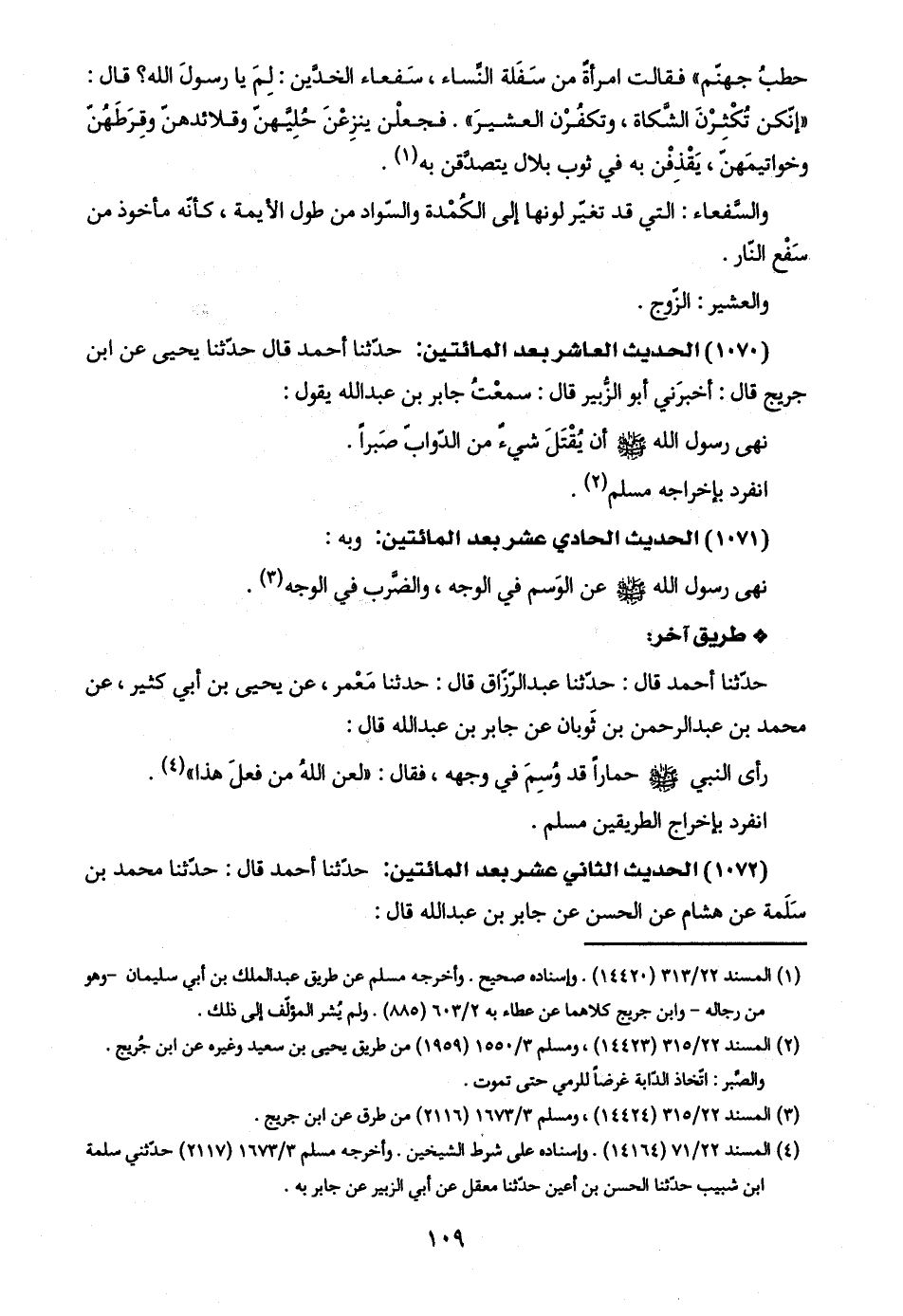(١٠٧٠) الحديث العاشر بعد المائتين: حدّثنا أحمد قال حدّثنا يحيى عن ابن جريج قال: أخبرَني أبو الزُّبير قال: سمعْتُ جابر بن عبد اللَّه يقول: