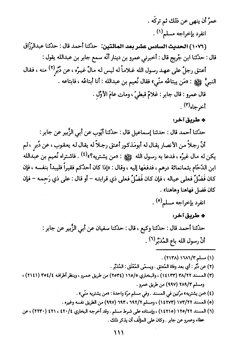 (٦) المسند ٢٢/ ١٢٥ (١٤٢١٥)، وإسناده على شرط مسلم. وقد أخرجه البخاري ٤/ ٤٢٠، ٤٢١ (٢٢٣٠)، عن عطاء وعمرو عن جابر. وكان على المؤلّف أن يذكر ذلك.