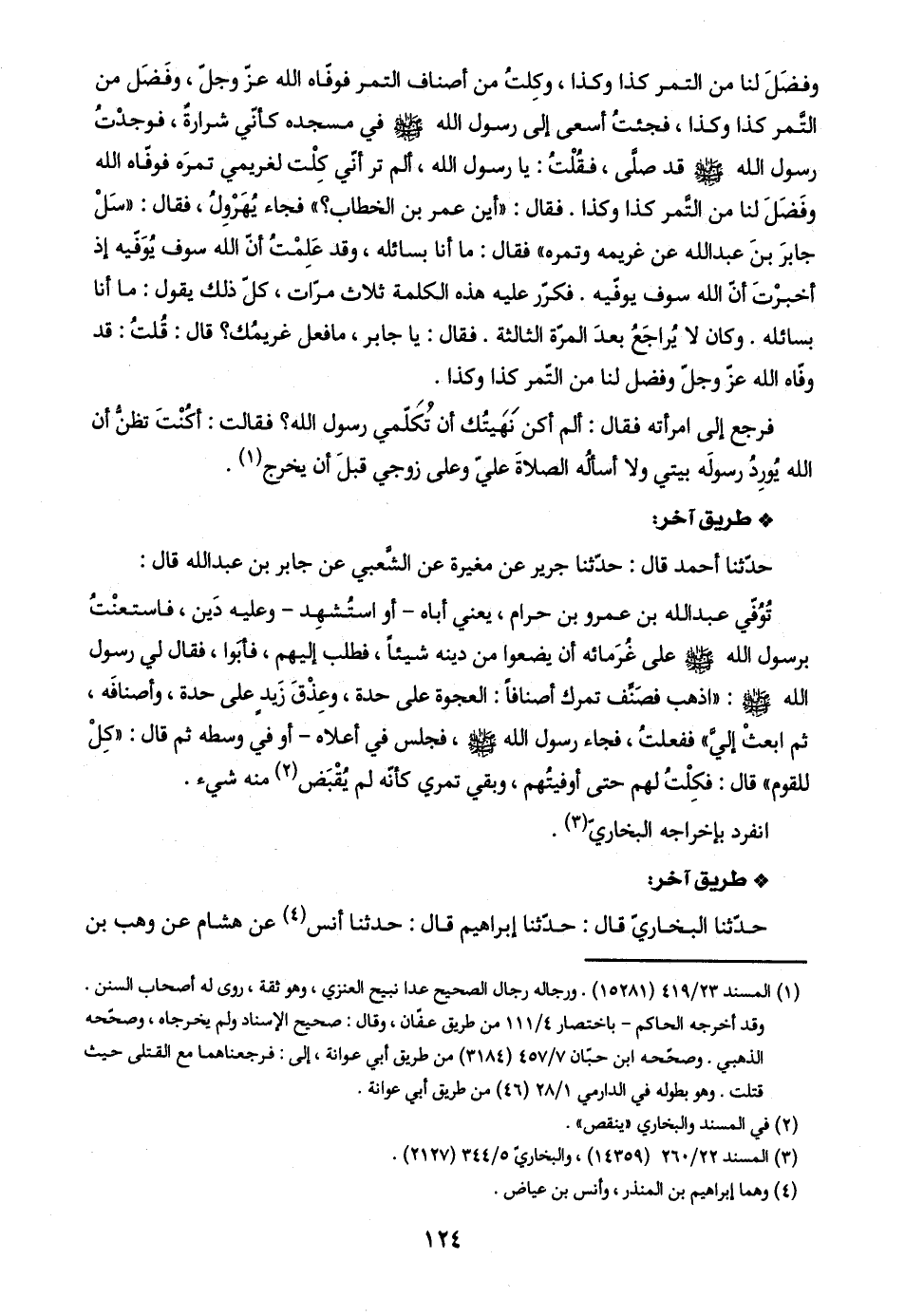 حدّثنا أحمد قال: حدّثنا جرير عن مغيرة عن الشَّعبي عن جابر بن عبد اللَّه قال: