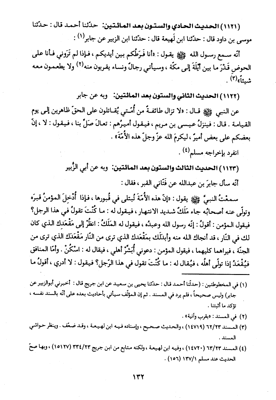 (١١٢١) الحديث الحادي والستون بعد المائتين: حدّثنا أحمد قال: حدّثنا موسى بن داود قال: حدّثنا ابن لَهيعة قال: حدّثنا ابن الزبير عن جابر (١):