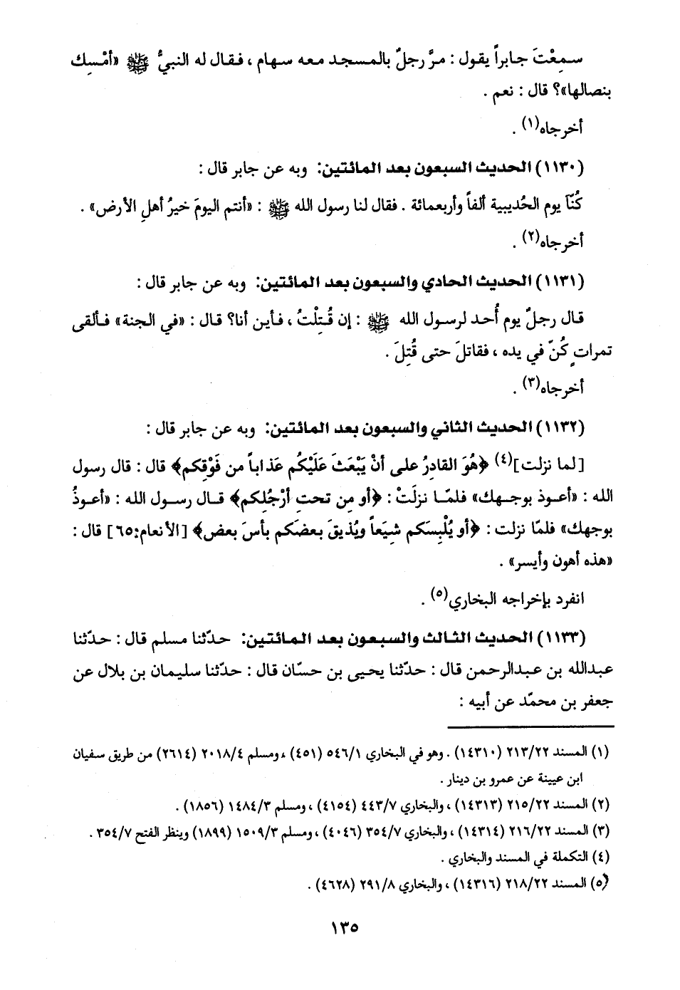 (١١٣٣) الحديث الثالث والسبعون بعد المائتين: حدّثنا مسلم قال: حدّثنا عبد اللَّه بن عبد الرحمن قال: حدّثنا يحيى بن حسّان قال: حدّثنا سليمان بن بلال عن جعفر بن محمّد عن أبيه: