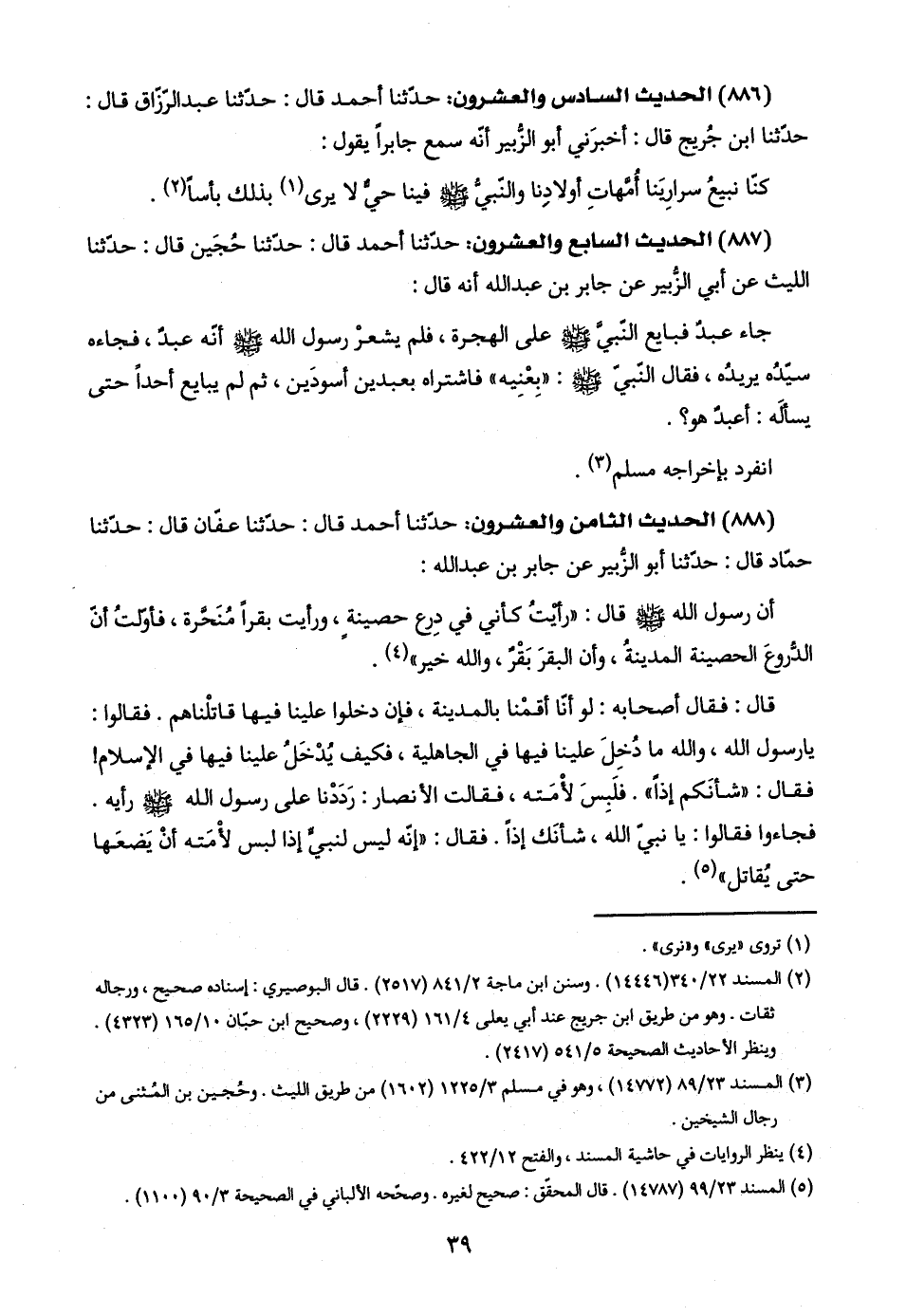 (٨٨٦) الحديث السادس والعشرون: حدّثنا أحمد قال: حدّثنا عبد الرّزّاق قال: حدّثنا ابن جُريج قال: أخبرَني أبو الزُّبير أنّه سمع جابرًا يقول: