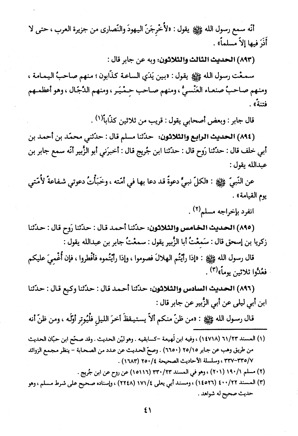 (٨٩٥) الحديث الخامس والثلاثون: حدّثنا أحمد قال: حدّثنا رَوح قال: حدّثنا زكريا بن إسحق قال: سَمِعْتُ أبا الزُّبير يقول: سمعْتُ جابر بن عبد اللَّه يقول: