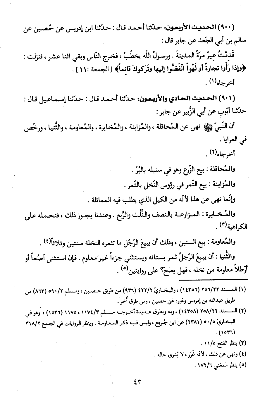 (٩٠١) الحديث الحادي والأربعون: حدّثنا أحمد قال: حدّثنا إسماعيل قال: حدّثنا أيّوب عن أبي الزُّبير عن جابر: