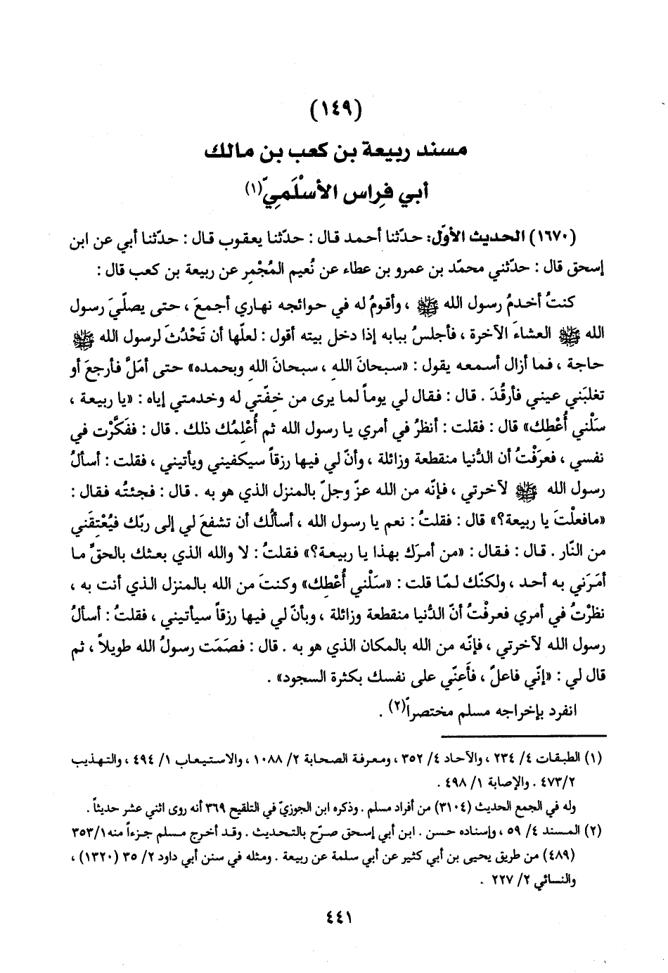 (١٤٩) مسند ربيعة بن كعب بن مالك أبي فِراس الأسْلَمِيّ (١)