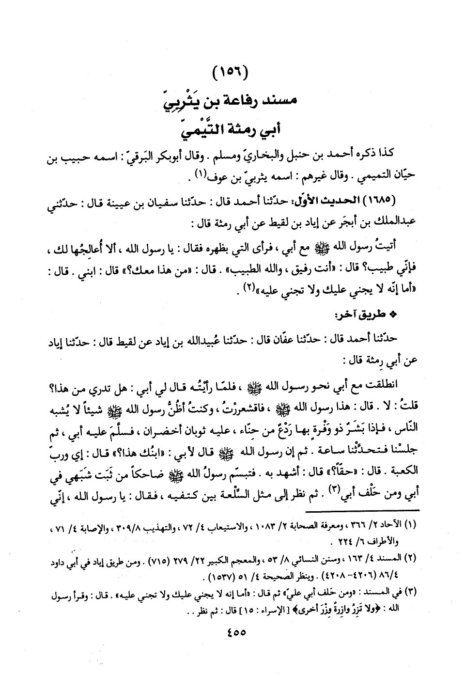 (١٥٦) مسند رفاعة بن يَثْرِبِيّ أبي رمثة التَّيْميّ
