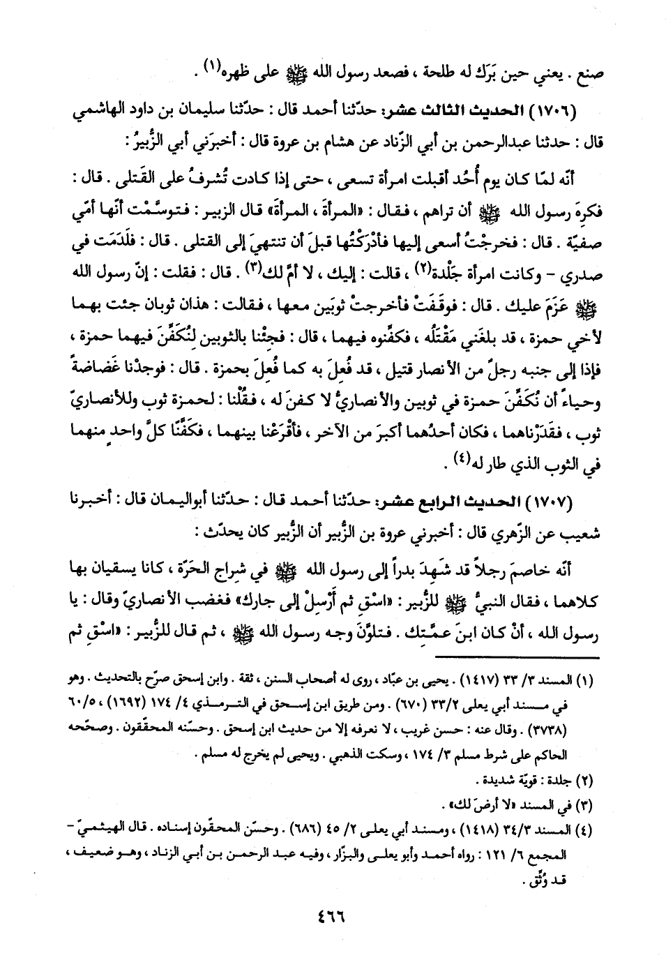 (١٧٠٦) الحديث الثالث عشر: حدّثنا أحمد قال: حدّثنا سليمان بن داود الهاشمي قال: حدّثنا عبد الرحمن بن أبي الزّناد عن هشام بن عروة قال: أخبرَني أبي الزُّبيرُ: