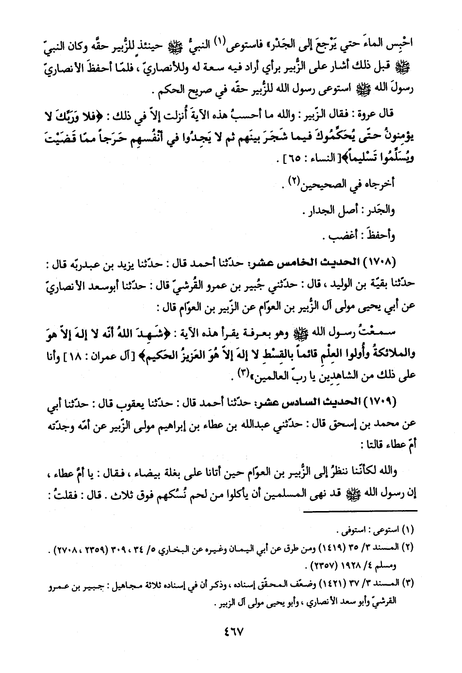(١٧٠٨) الحديث الخامس عشر: حدّثنا أحمد قال: حدّثنا يزيد بن عبد ربّه قال: حدّثنا بقيّة بن الوليد، قال: حدّثني جُبير بن عمرو القُرشيّ قال: حدّثنا أبو سعد الأنصاريّ عن أبي يحيى مولى آل الزّبير بن العوّام عن الزّبير بن العوّام قال: