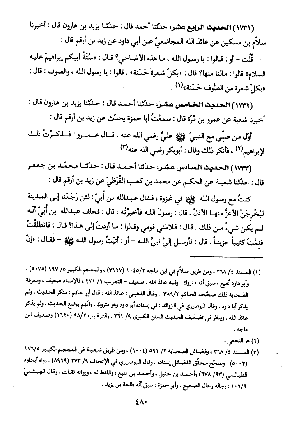 (١٧٣١) الحديث الرابع عشر: حدّثنا أحمد قالا: حدّثنا يزيد بن هارون قال: أخبرنا سلّام بن مسكين عن عائذ اللَّه المجاشعيّ عن أبي داود عن زيد بن أرقم قال: