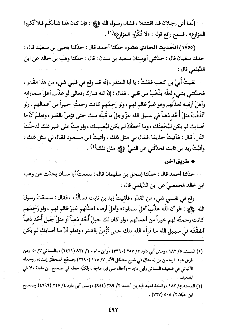(٢) المسند ٥/ ١٨٢، والسّنة لعبد اللَّه بن أحمد ٢/ ٣٨٩ (٨٤٤)، وسنن أبي داود ٤/ ٢٢٥ (٤٦٩٩) وصحيح ابن حبّان ٢/ ٥٠٥ (٧٢٧).