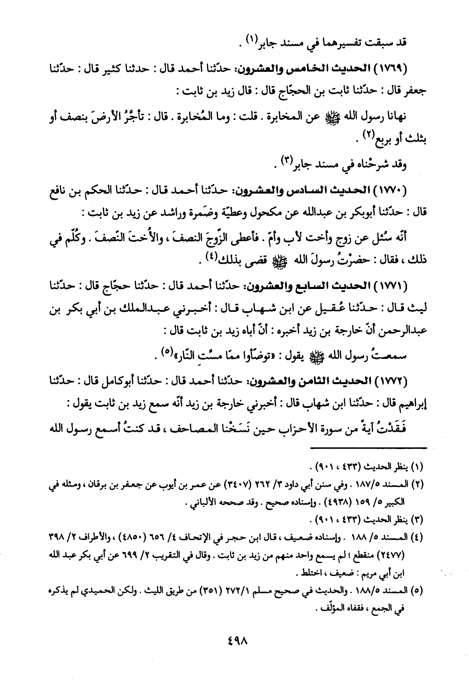 (١٧٦٩) الحديث الخامس والعشرون: حدّثنا أحمد قال: حدّثنا كثير قال: حدّثنا جعفر قال: حدّثنا ثابت بن الحجّاج قال: قال زيد بن ثابت: