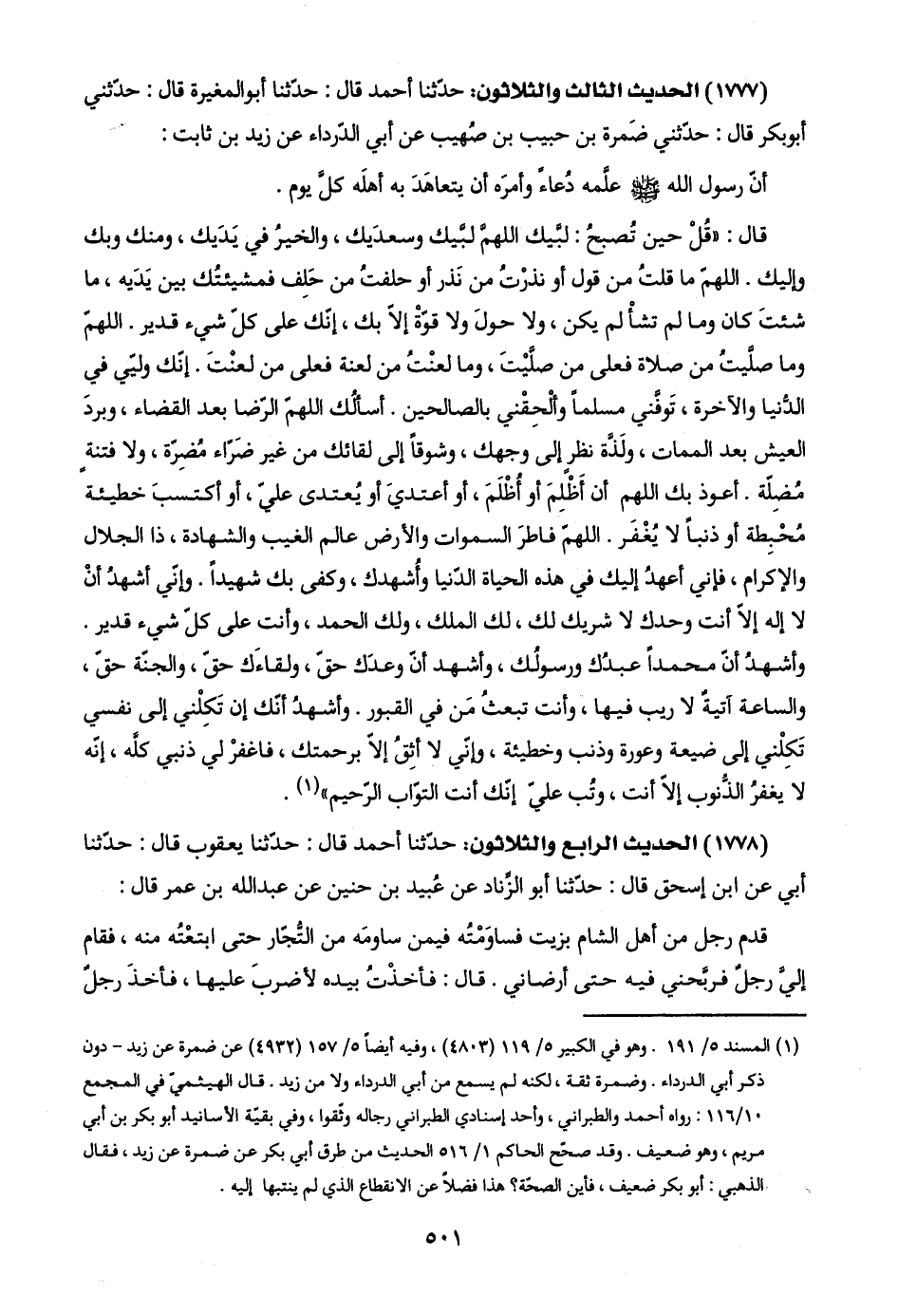 (١٧٧٧) الحديث الثالث والثلاثون: حدّثنا أحمد قال: حدّثنا أبو المغيرة قال: حدّثني أبو بكر قال: حدّثني ضَمرة بن حبيب بن صُهيب عن أبي الدّرداء عن زيد بن ثابت: