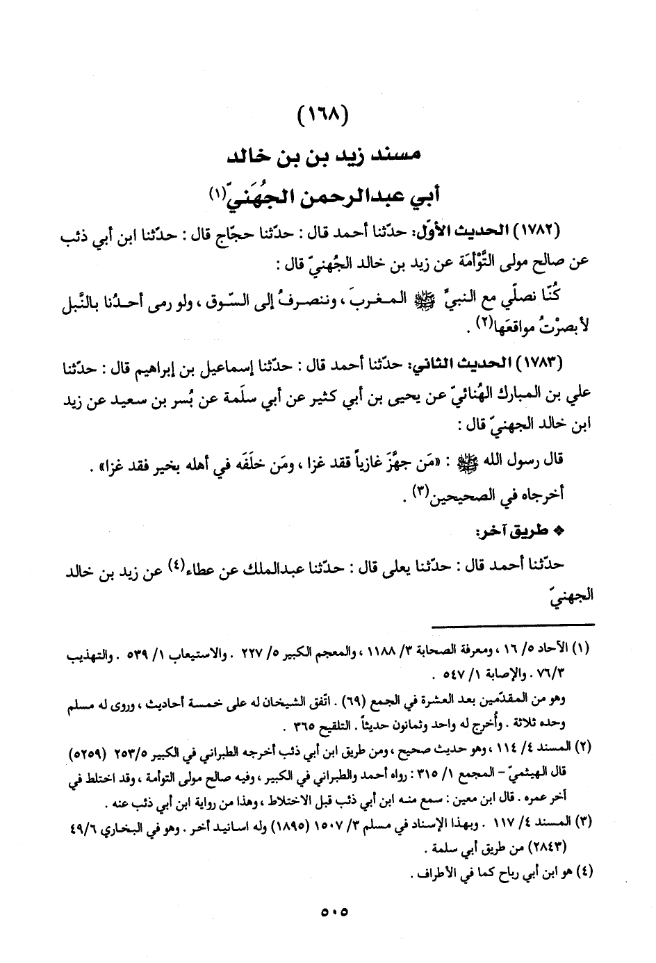 (١٦٨) مسند زيد بن بن خالد أبي عبد الرحمن الجُهَنيّ (١)