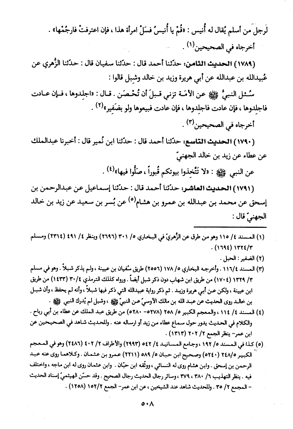 (١٧٩٠) الحديث التاسع: حدّثنا أحمد قال؛ حدّثنا ابن نُمير قال: أخبرنا عبد الملك عن عطاء عن زيد بن خالد الجهنيّ: