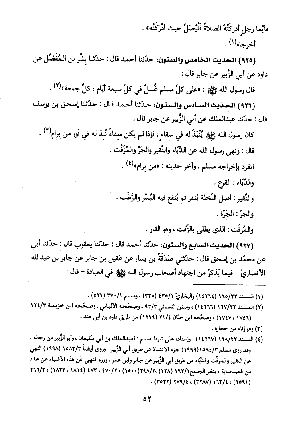 (٩٢٥) الحديث الخامس والسقون: حدّثنا أحمد قال: حدّثنا بِشْر بن المُفَضَّل عن داود عن أبي الزُّبير عن جابر قال: