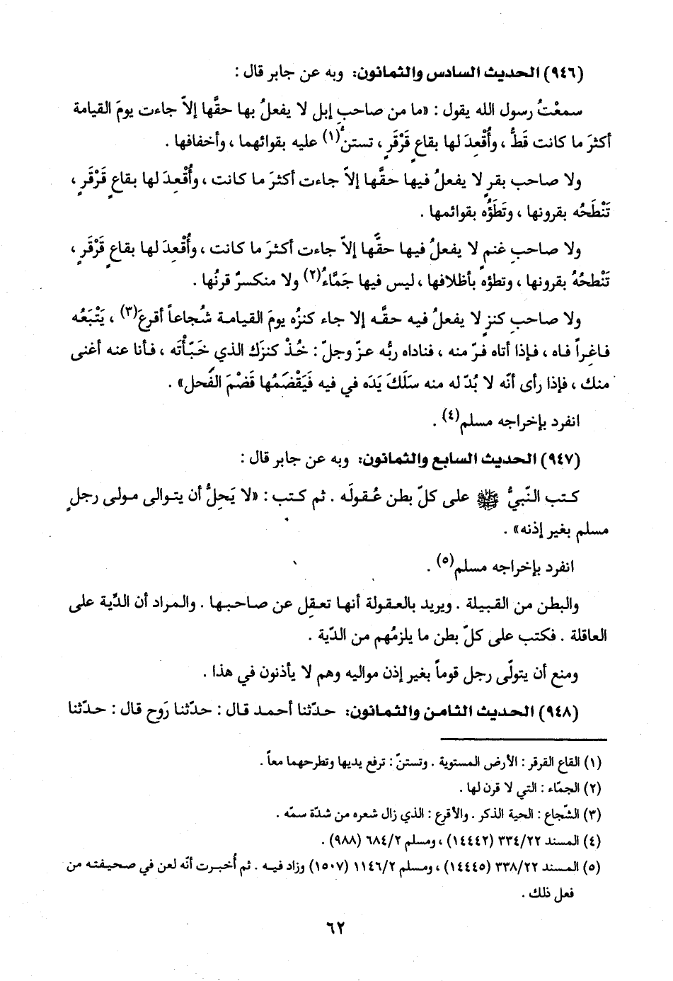 (٤) المسند ٢٢/ ٣٣٤ (١٤٤٤٢)، ومسلم ٢/ ٦٨٤ (٩٨٨).