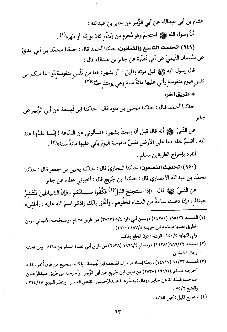 (٩٤٩) الحديث التاسع والثمانون: حدّثنا أحمد قال: حدقنا محمّد بن أبي عديّ عن سُليمان التّيميّ عن أبي نَضْرة عن جابر بن عبد اللَّه قال: