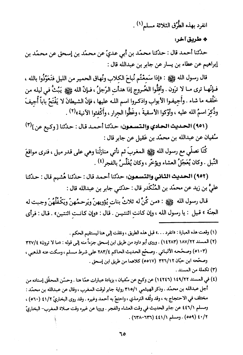 (١) وقعت هذه العبارة: "انفرد. . . " قبل هذه الطريق، ونقلت إلى هنا ليستقيم الحكم.