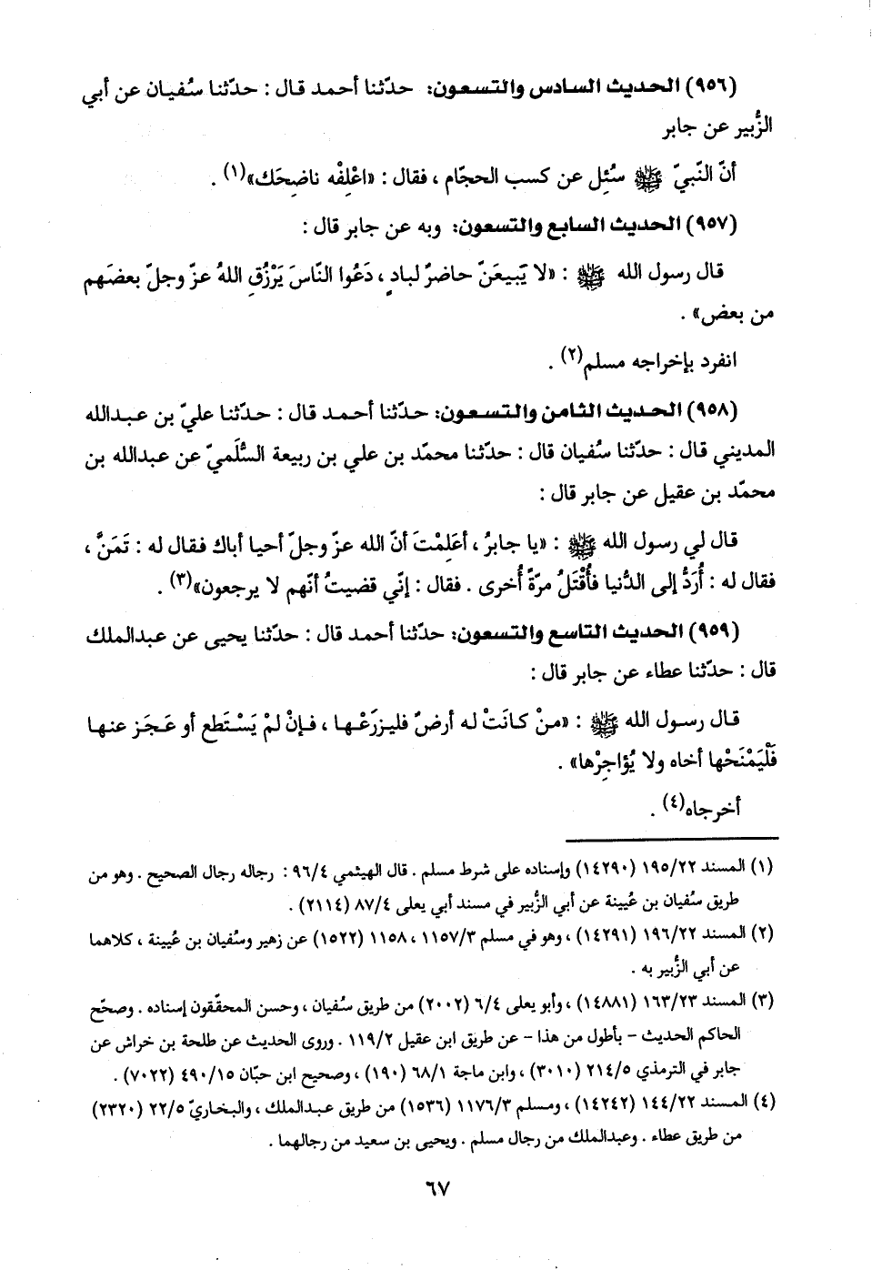 (٩٥٦) الحديث السادس والتسعون: حدّثنا أحمد قال: حدّثنا سُفيان عن أبي الزُّبير عن جابر: