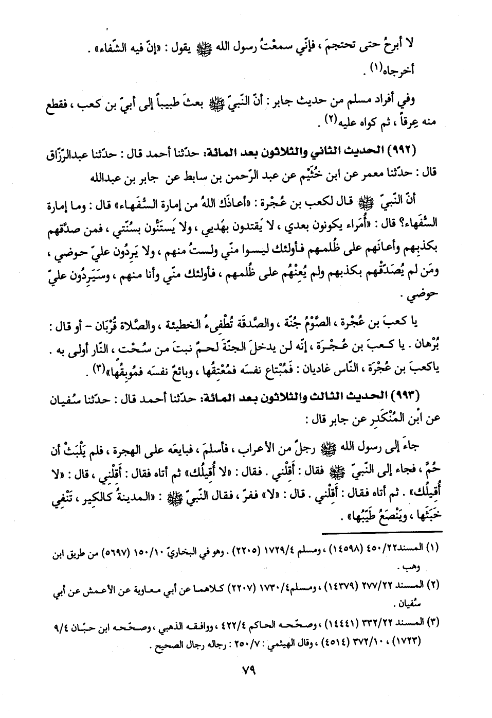 (٩٩٢) الحديث الثاني والثلاثون بعد المائة: حدّثنا أحمد قال: حدّثنا عبد الرّزّاق قال: حدّثنا معمر عن ابن خُثَيْم عن عبد الرّحمن بن سابط عن جابر بن عبد اللَّه: