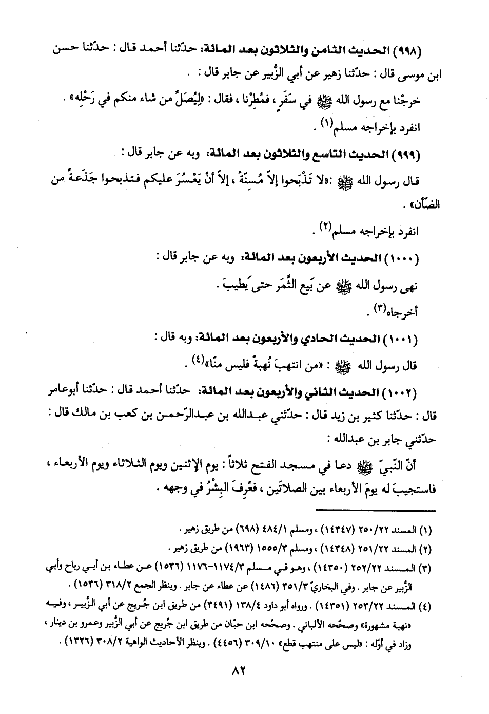 (٩٩٨) الحديث الثامن والثلاثون بعد المائة: حدّثنا أحمد قال: حدّثنا حسن ابن موسى قال: حدّثنا زهير عن أبي الزُّبير عن جابر قال:
