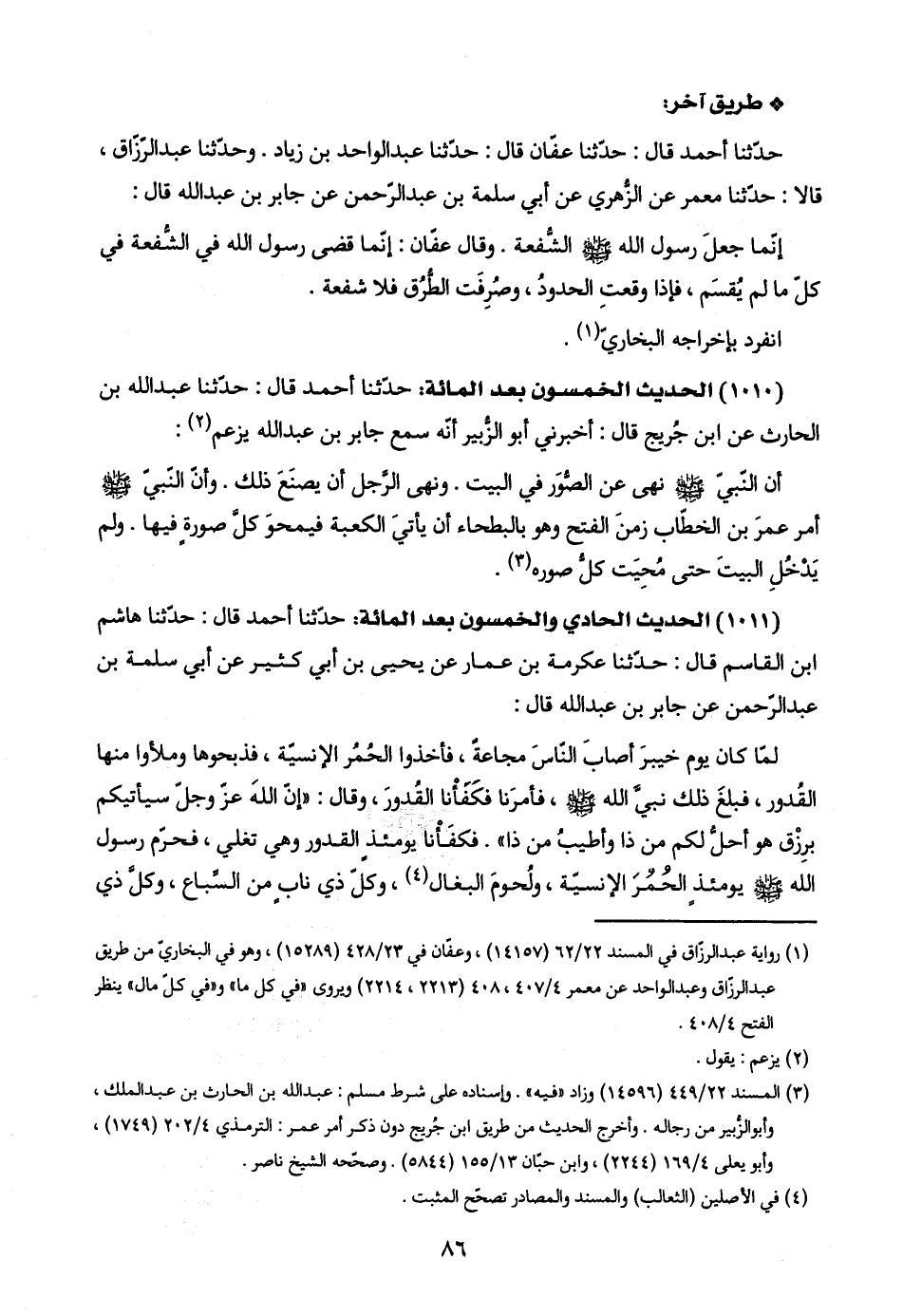 (١٠١٠) الحديث الخمسون بعد المائة: حدّثنا أحمد قال: حدّثنا عبد اللَّه بن الحارث عن ابن جُريج قال: أخبرني أبو الزُّبير أنّه سمع جابر بن عبد اللَّه يزعم (٢):