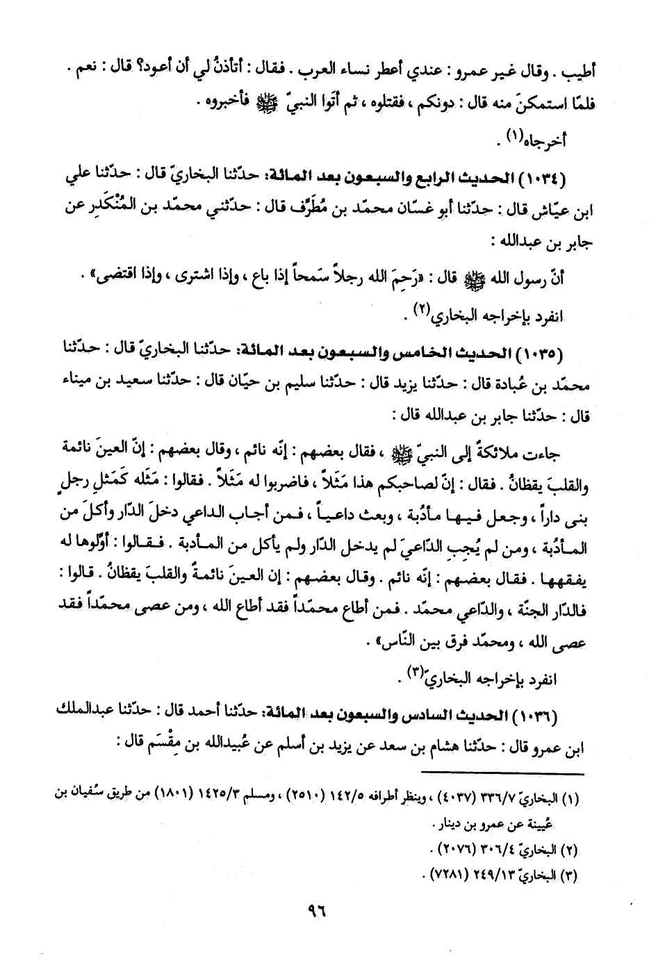 (١٠٣٤) الحديث الرابع والسبعون بعد المائة: حدّثنا البخاريّ قال: حدّثنا علي ابن عيّاش قال: حدّثنا أبو غسّان محمّد بن مُطَرِّف قال: حدّثني محمّد بن المُنْكَدِر عن جابر بن عبد اللَّه: