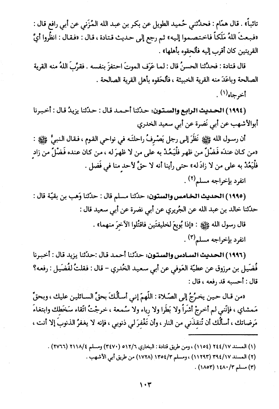 (١٩٩٤) الحديث الرابع والستون: حدّثنا أحمد قال: حدّثنا يزيدُ قال: أخبرنا أبو الأشهب عن أبي نَضرة عن أبي سعيد الخدري: