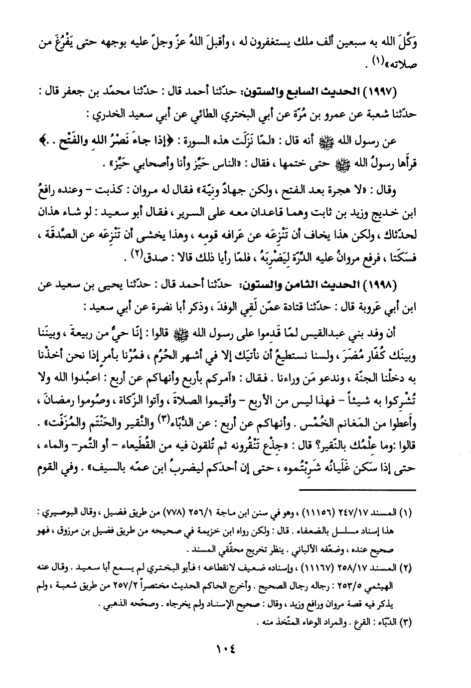 (١٩٩٨) الحديث الثامن والستون: حدّثنا أحمد قال: حدّثنا يحيى بن سعيد عن ابن أبي عَروبة قال: حدّثنا قتادة عمّن لَقِي الوفدَ، وذكر أبا نضرة عن أبي سعيد:
