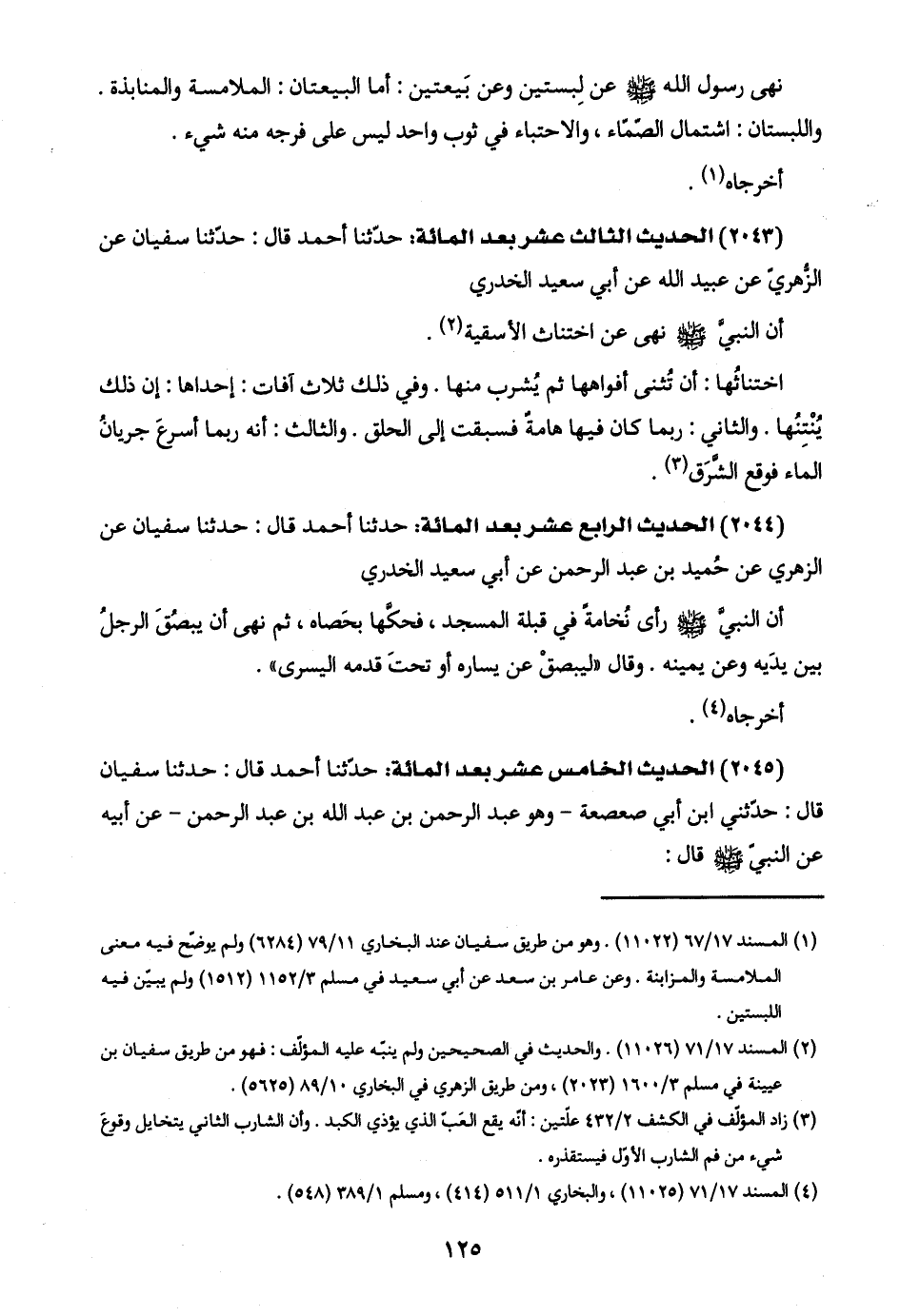 (١) المسند ١٧/ ٦٧ (١١٠٢٢). وهو من طريق سفيان عند البخاري ١١/ ٧٩ (٦٢٨٤) ولم يوضّح فيه معنى الملامسة والمزابنة. وعن عامر بن سعد عن أبي سعيد في مسلم ٣/ ١١٥٢ (١٥١٢) ولم يبيّن فيه اللبستين.