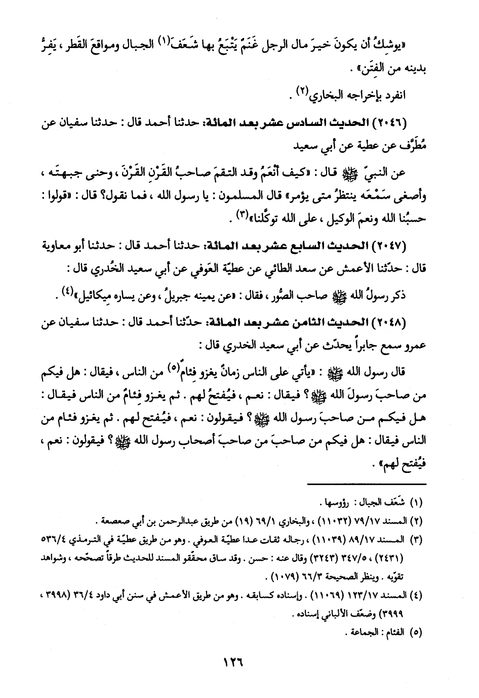 (٢٠٤٦) الحديث السادس عشر بعد المائة: حدّثنا أحمد قال: حدّثنا سفيان عن مُطَرَّف عن عطية عن أبي سعيد: