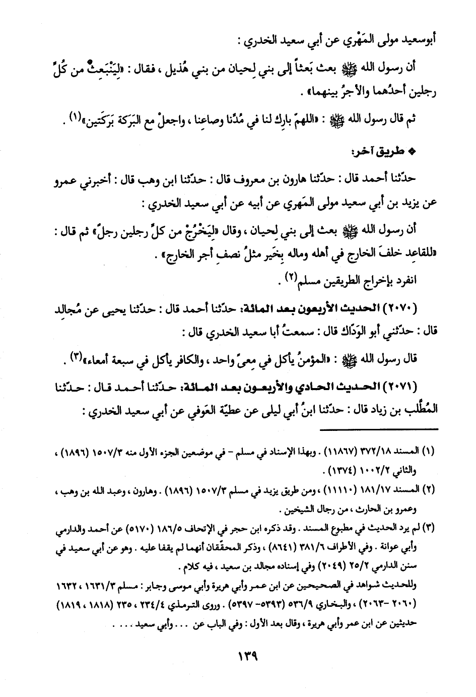 (٢٠٧٠) الحديث الأربعون بعد المائة: حدّثنا أحمد قال: حدّثنا يحيى عن مُجالِد قال: حدّثني أبو الوَدّاك قال: سمعتُ أبا سعيد الخدري قال:
