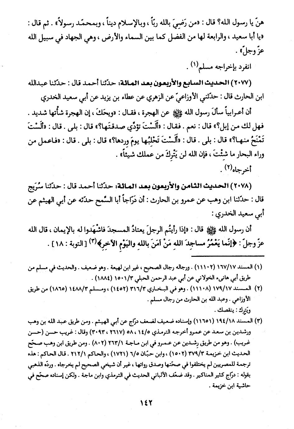 (٢٠٧٨) الحديث الثامن والأربعون بعد المائة: حدّثنا أحمد قال: حدّثنا سُرَيج قال: حدّثنا ابن وهب عن عمرو بن الحارث: أن دَرّاجًا أبا السَّمح حدّثه عن أبي الهيثم عن أبي سعيد الخدري: