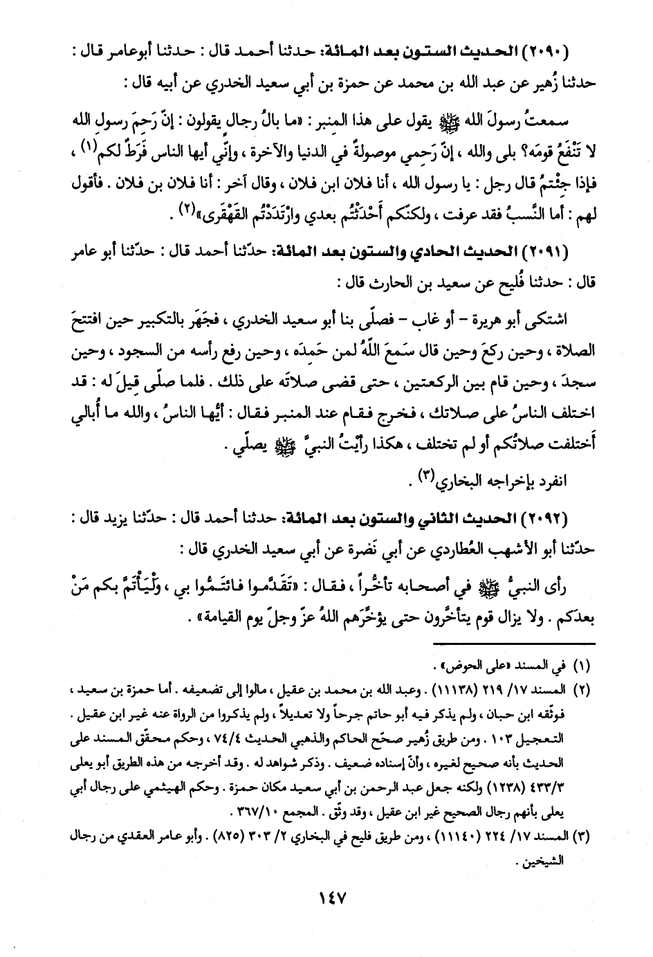 (٢٠٩١) الحديث الحادي والستون بعد المائة: حدّثنا أحمد قال: حدّثنا أبو عامر قال: حدّثنا فُليح عن سعيد بن الحارث قال: