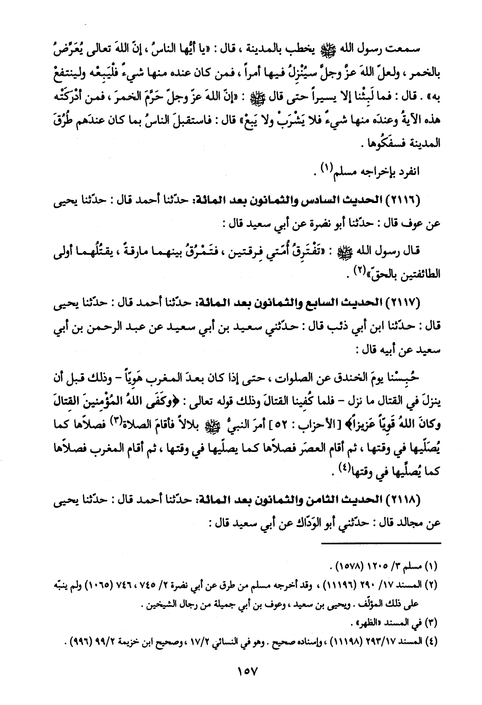 (٢١١٨) الحديث الثامن والثمانون بعد المائة: حدّثنا أحمد قال: حدّثنا يحيى عن مجالد قال: حدّثني أبو الوَدّاك عن أبي سعيد قال: