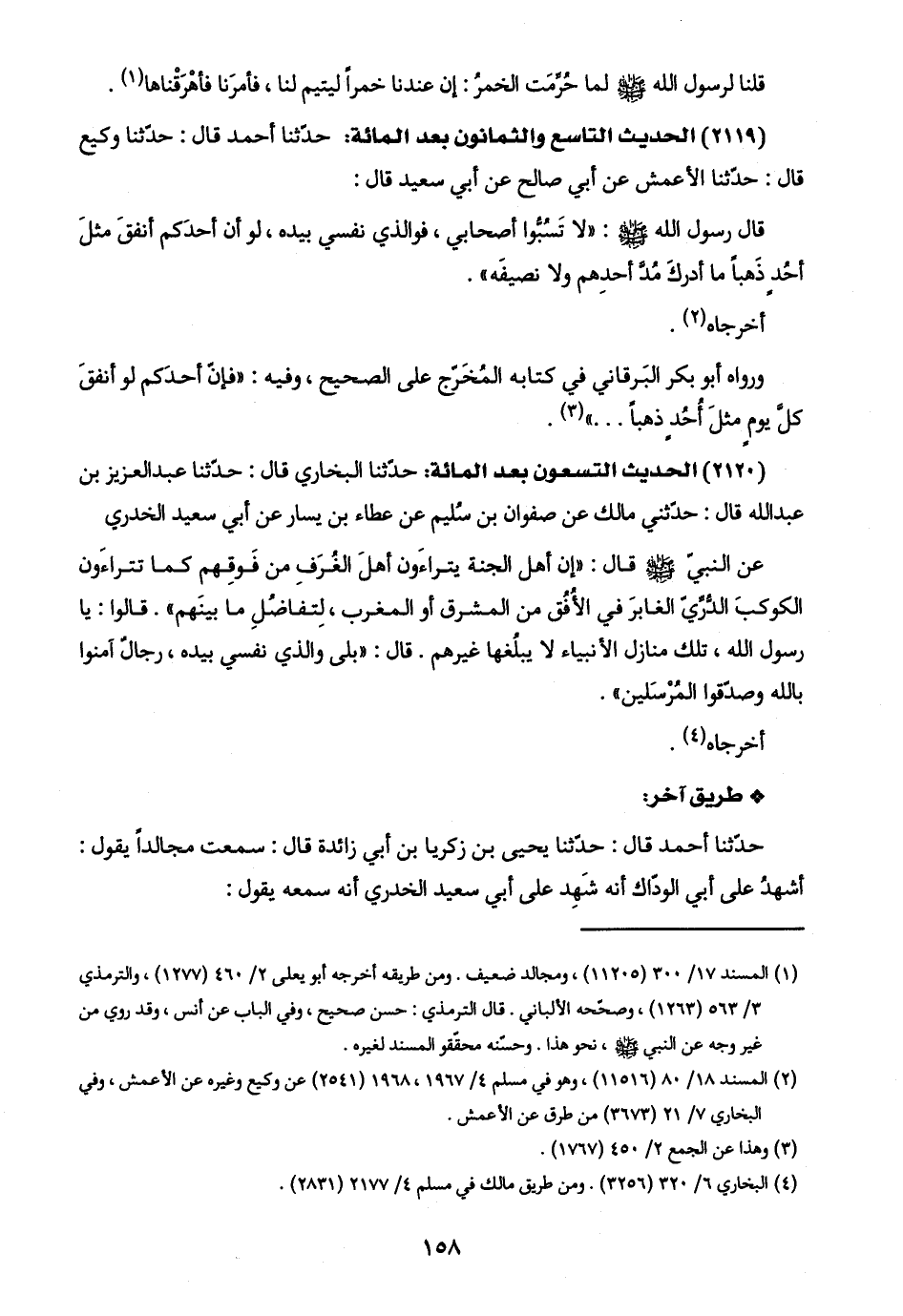 حدّثنا أحمد قال: حدّثنا يحيى بن زكريا بن أبي زائدة قال: سمعت مجالدًا يقول: أشهدُ على أبي الودّاك أنّه شَهِد على أبي سعيد الخدري أنّه سمعه يقول: