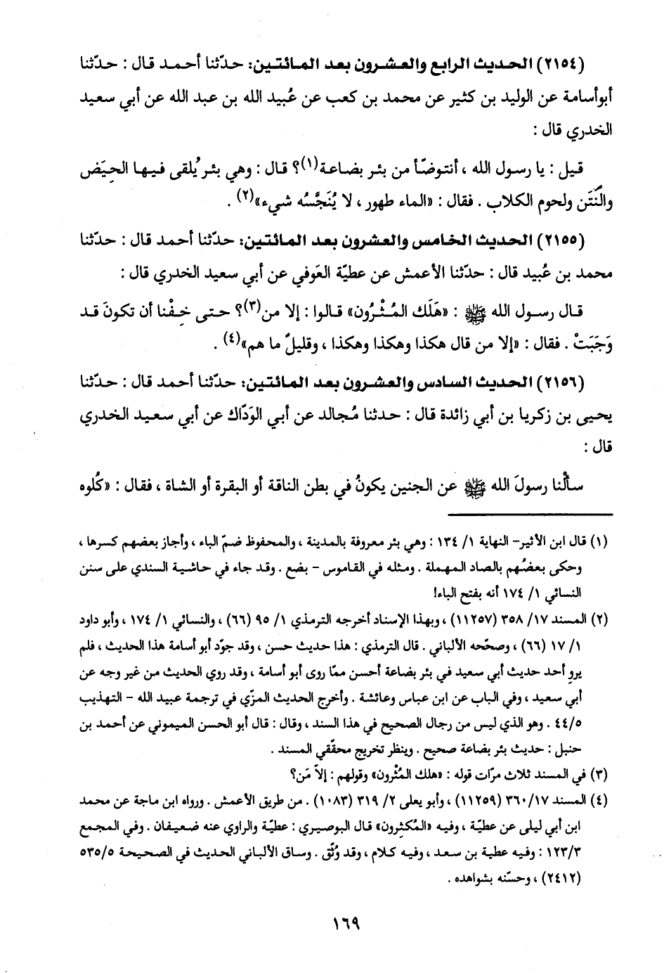 (٢١٥٦) الحديث السادس والعشرون بعد المائتين: حدّثنا أحمد قال: حدّثنا يحيى بن زكريا بن أبي زائدة قال: حدّثنا مُجالد عن أبي الوَدّاك عن أبي سعيد الخدري قال: